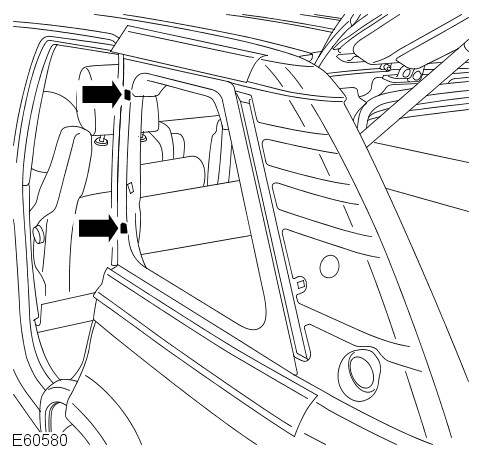 - Remove the D-pillar upper trim panel. For additional information, refer to: D-Pillar Trim Panel (501-05 Interior Trim and Ornamentation, Removal and Installation).