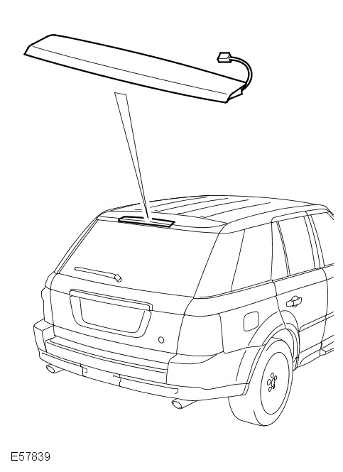 The high mounted stop lamp is activated, along with the tail lamp stop lamps, when the ignition switch is in the ignition position (II) and the brake pedal switch is active (by depressing the brake pedal).