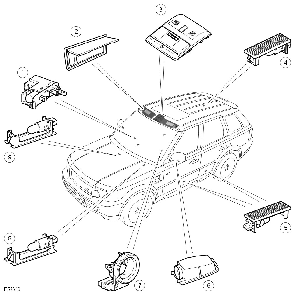 The interior lamps are controlled by a timer within the CJB which allows a 60 second delay period for the lamps to remain on after the ignition has been switched off or when the vehicle is unlocked. The following interior lamps are subject to the delay period:
