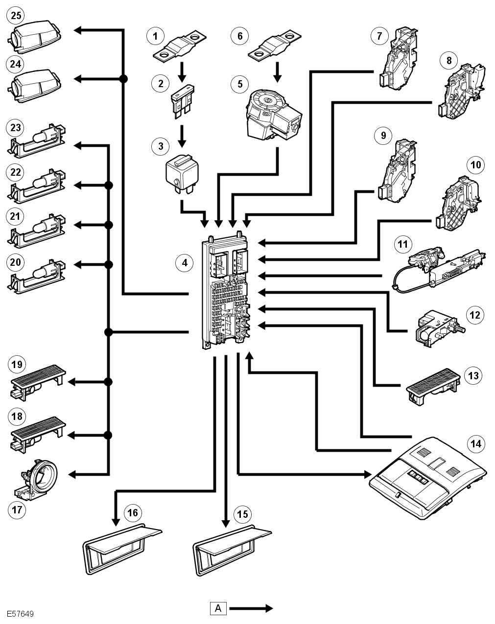 The Central Junction Box (CJB) is an integrated unit located behind the instrument panel on the passenger side of the bulkhead. The CJB contains fuses, relays and a number of microprocessors which control the power supply and functionality of the interior lighting system and other vehicle systems.