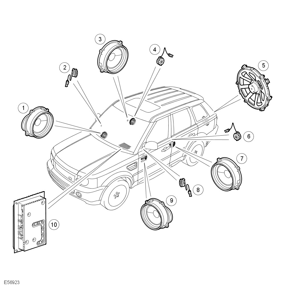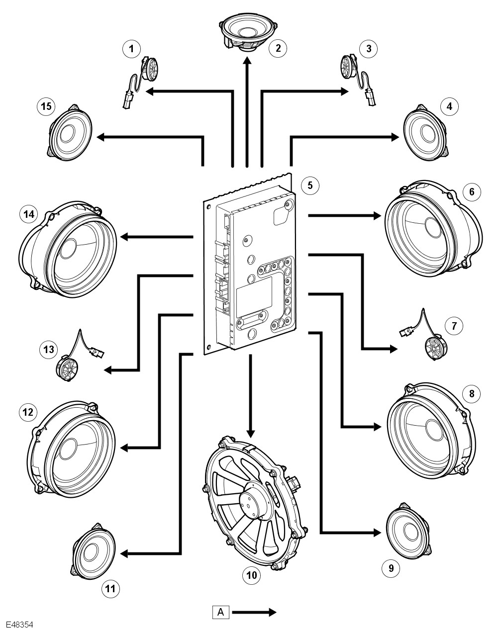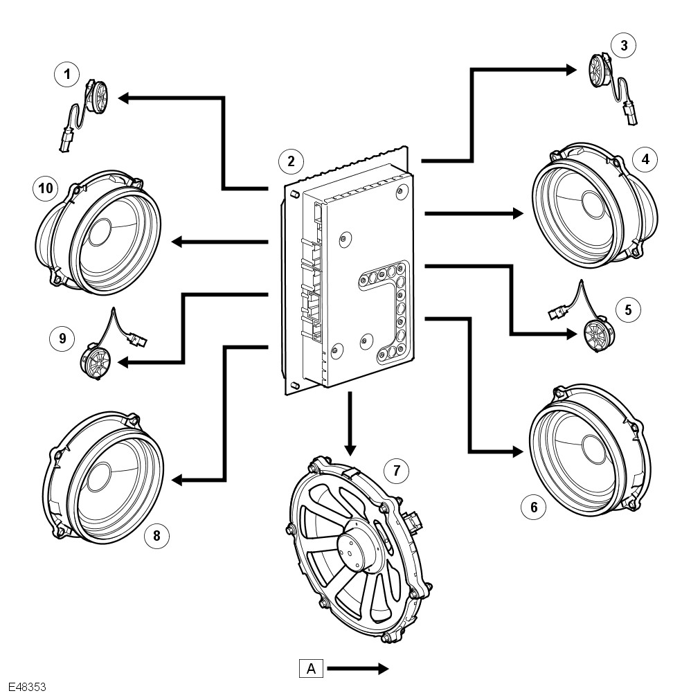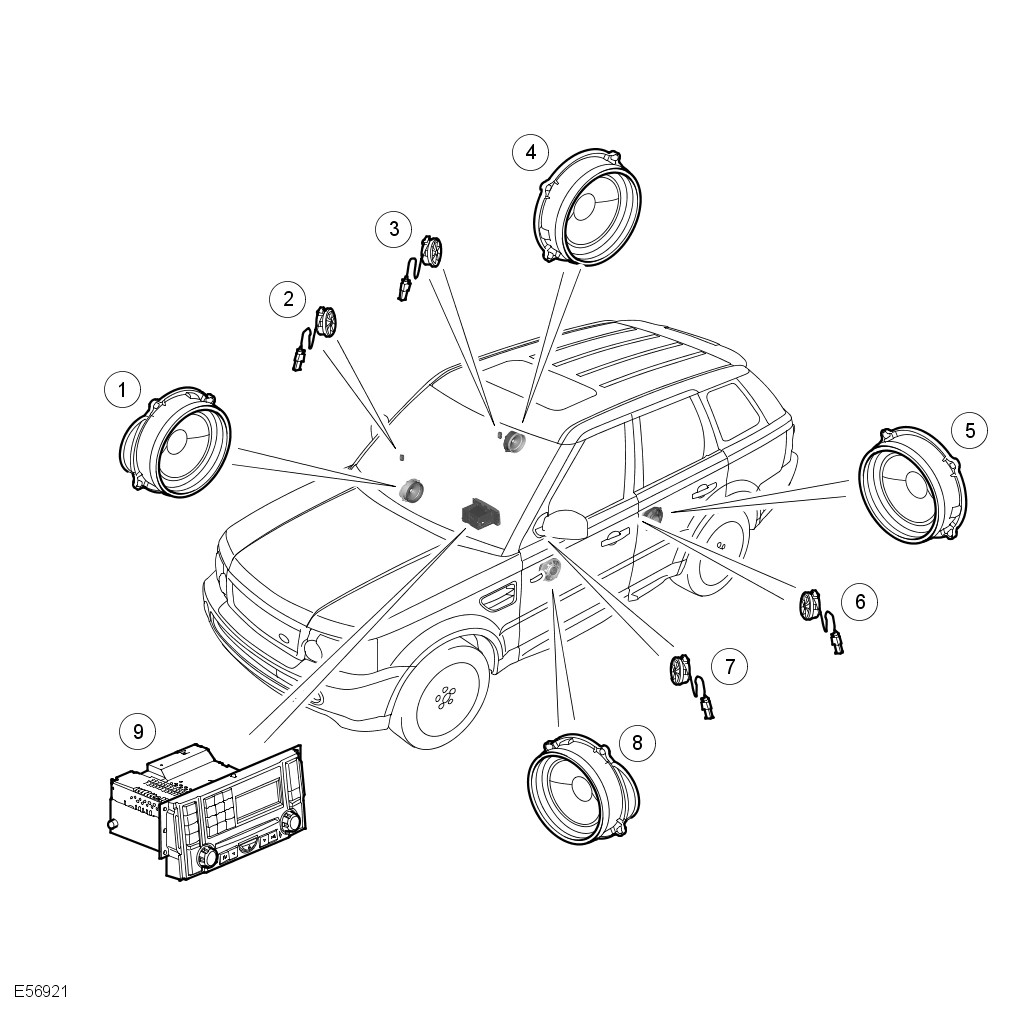| 1 | Front right-hand (RH) door mid/bass speaker |