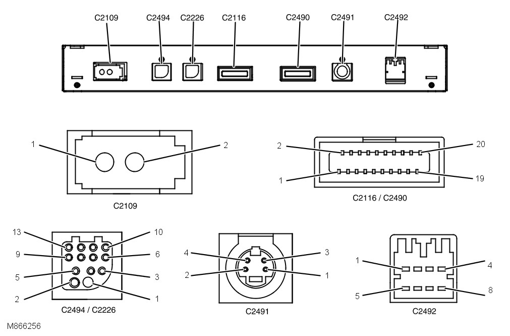 RSE Module Harness Connector C2116 and C2490 (Rear screens)
