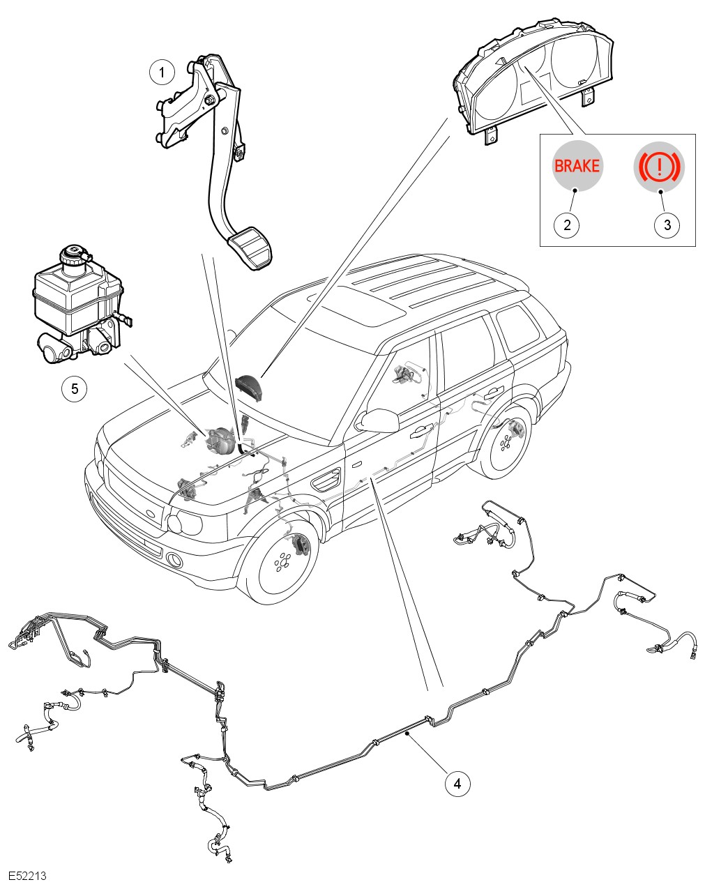 The brake pipes and hoses connect the master cylinder to the wheel brakes via the hydraulic control unit. The pipes are arranged to provide a front and rear split braking system. The brakes on the front axle are operated by the primary system; the brakes on the rear axle are operated by the secondary system.