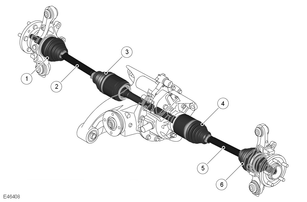 The rear drive halfshafts are identical in their construction with a Constant Velocity (CV) joint at each end to allow for suspension movement.