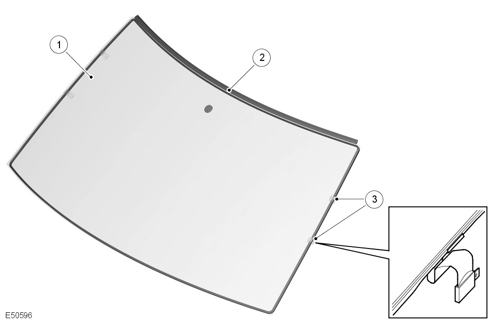 The laminated windshield is bonded, and sealed, to the body aperture using PU sealant. Heat bonded to the inner surface of the screen is the optical unit for the rain sensor and the interior mirror-mounting boss.