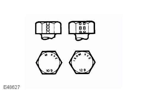 In addition to marks identifying the manufacturer, the top of the bolt head is also marked with symbols indicating the strength grade e.g. 8.8, 10.9, 12.9, 14.9. Alternatively, some bolts and screws have the M and strength grade symbol stamped on the flats of the hexagon.