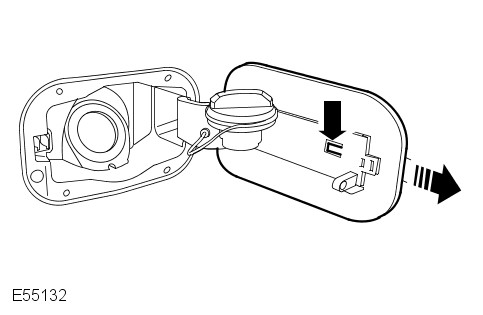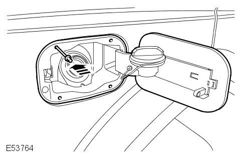 - Remove the fuel filler interlock catch assembly. For additional information, refer to: Fuel Filler Interlock Catch (501-03 Body Closures, Removal and Installation).