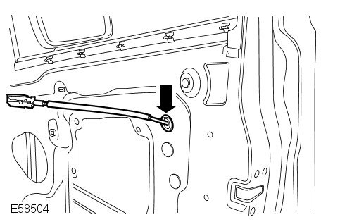 - Install the front door exterior handle. For additional information, refer to: Exterior Front Door Handle (501-14 Handles, Locks, Latches and Entry Systems, Removal and Installation).