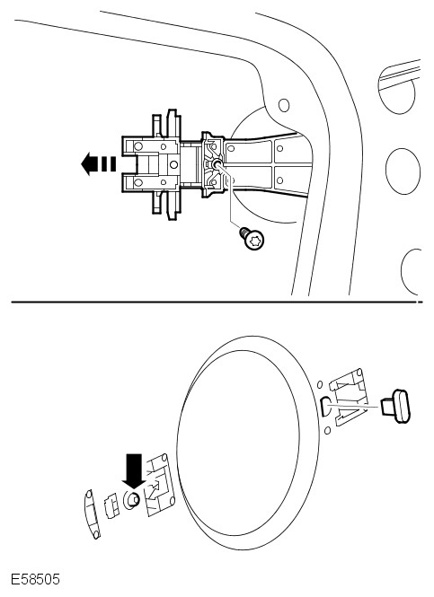 - Remove the front door exterior handle. For additional information, refer to: Exterior Front Door Handle (501-14 Handles, Locks, Latches and Entry Systems, Removal and Installation).