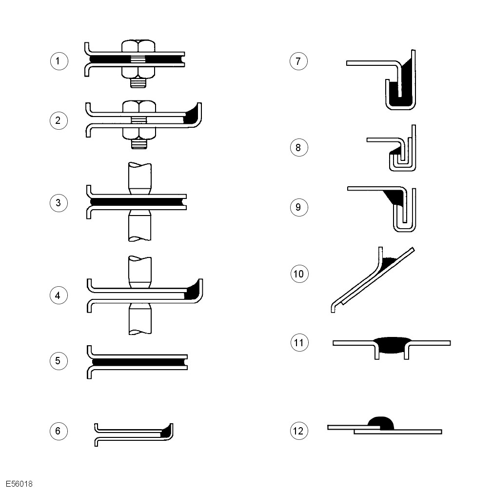 | Polyurethane Seam Sealer - bolted, spot welded and bonded panel edges; type (a) and (b) gaps between panels; type (b) clinch joints | 3M | 08684/89/94 |