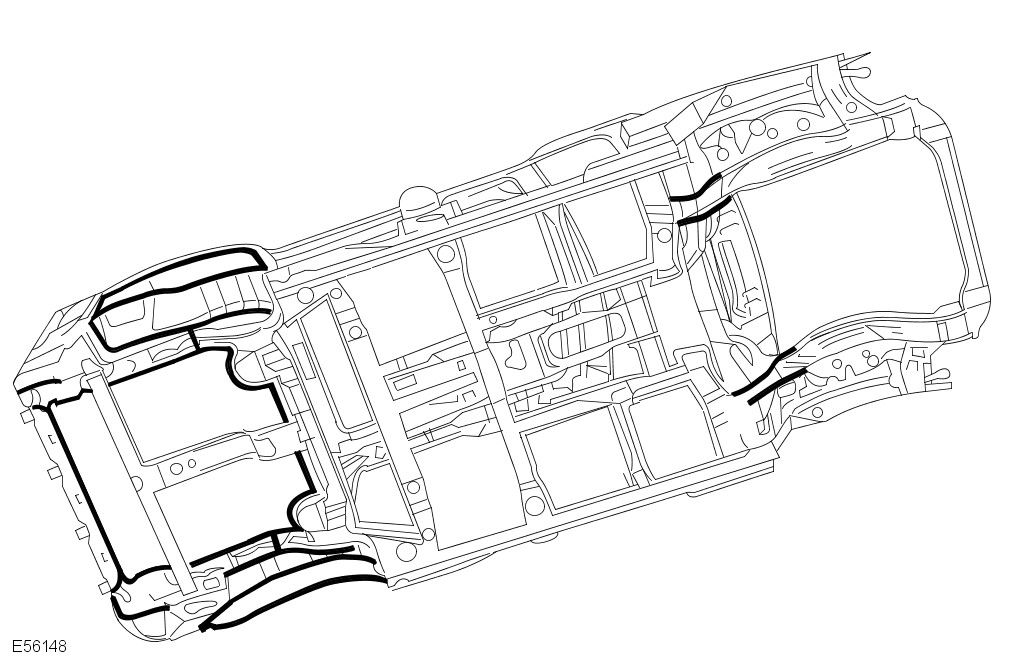 Under floor areas and rocker outer panels are treated with a plastisol PVC underbody sealer. This material is not suitable for re-treatment. When repairing areas of underbody sealer, strip the factory-applied underbody sealer back to a suitable break point. Ensure that a clean metal surface is exposed and that the edge of the existing adheres soundly to the panel.