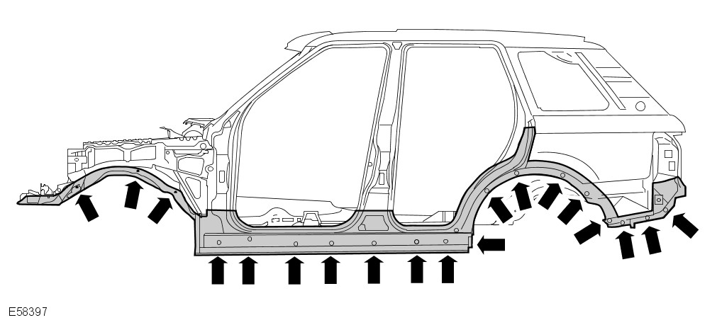 Whenever body repairs have been carried out, ensure that full sealing and corrosion protection treatments are reinstated. This applies both to the damaged areas and also to areas where protection has been indirectly impaired, as a result either of accident damage or repair operations.