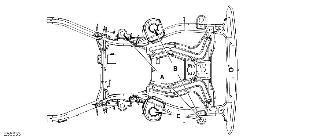 | C | Body Mount 1 (LH front) | Body Mount 3 (RH) | 2403.3 (94.61) |