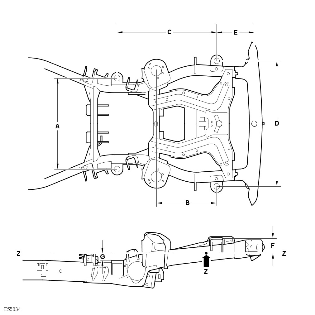 | C | Body Mount 5 (LH rear) | Rear Damper Mounting (LH) | 540.7 (21.29) |