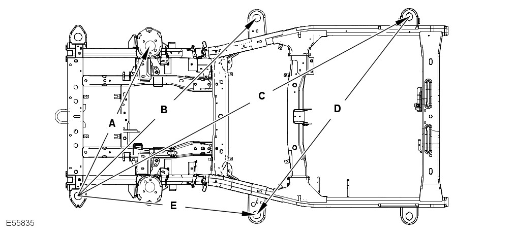 | E | Body Mount 1 (LH front) | Body Mount 2 (RH) | 1164.63 (45.85) |