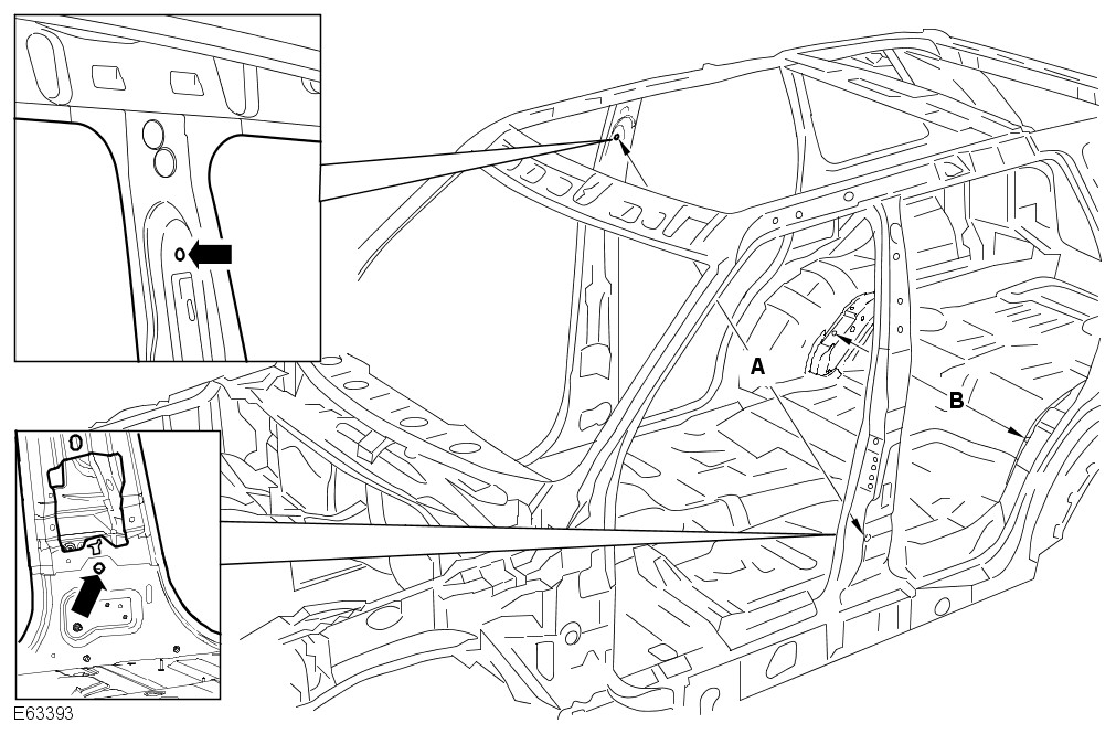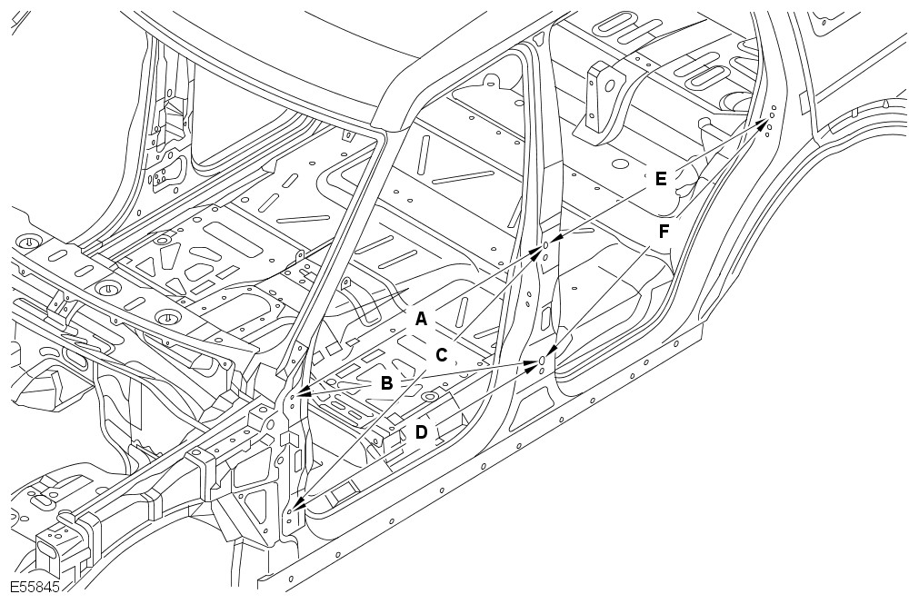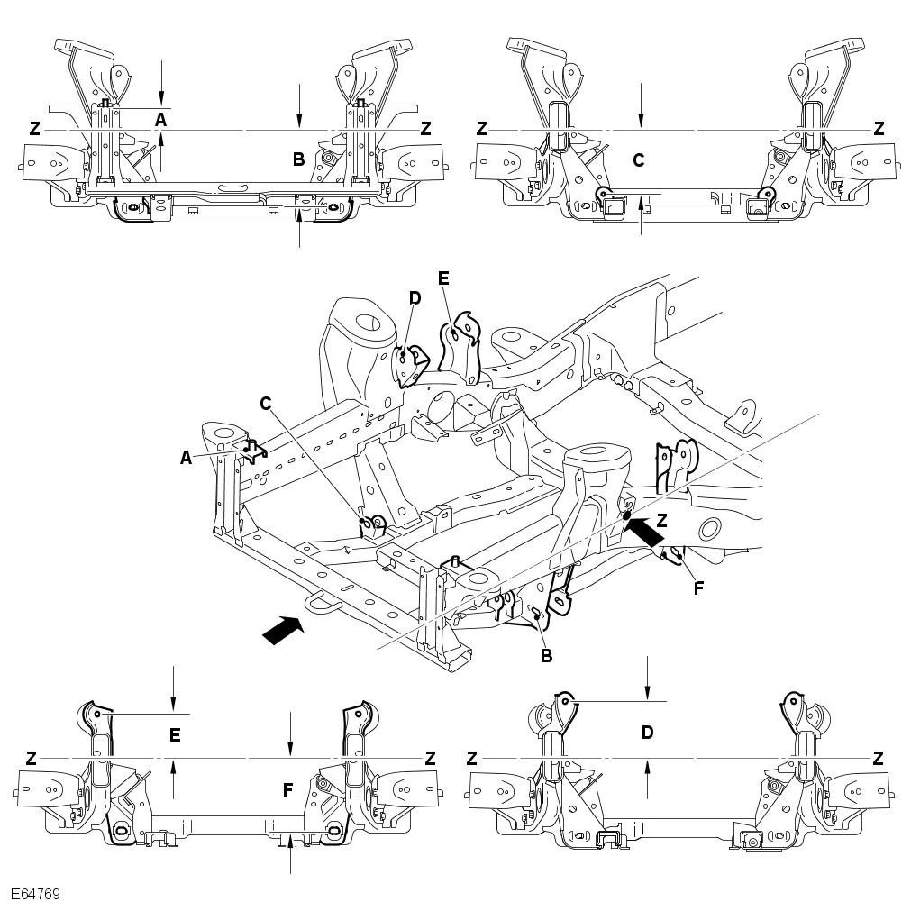 | B | Body Mount 5 (LH rear) | Rear Damper Mounting (RH) | 1156 (45.51) |