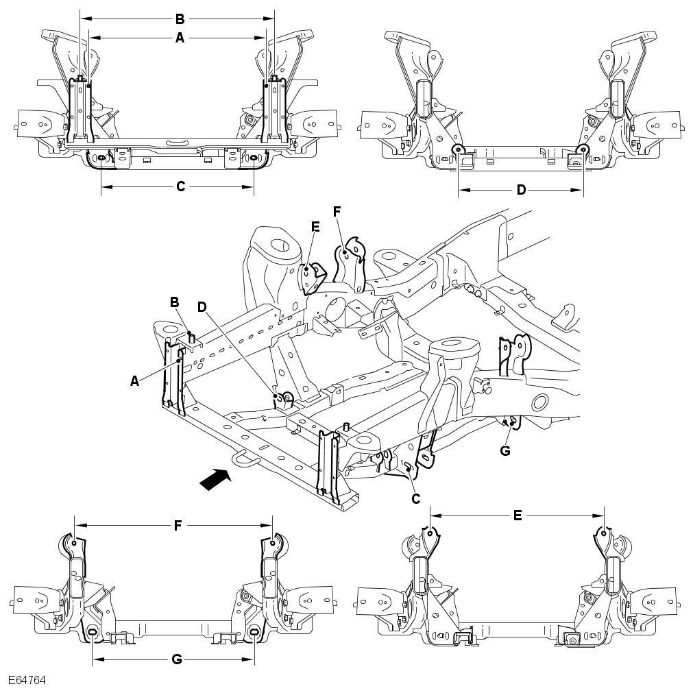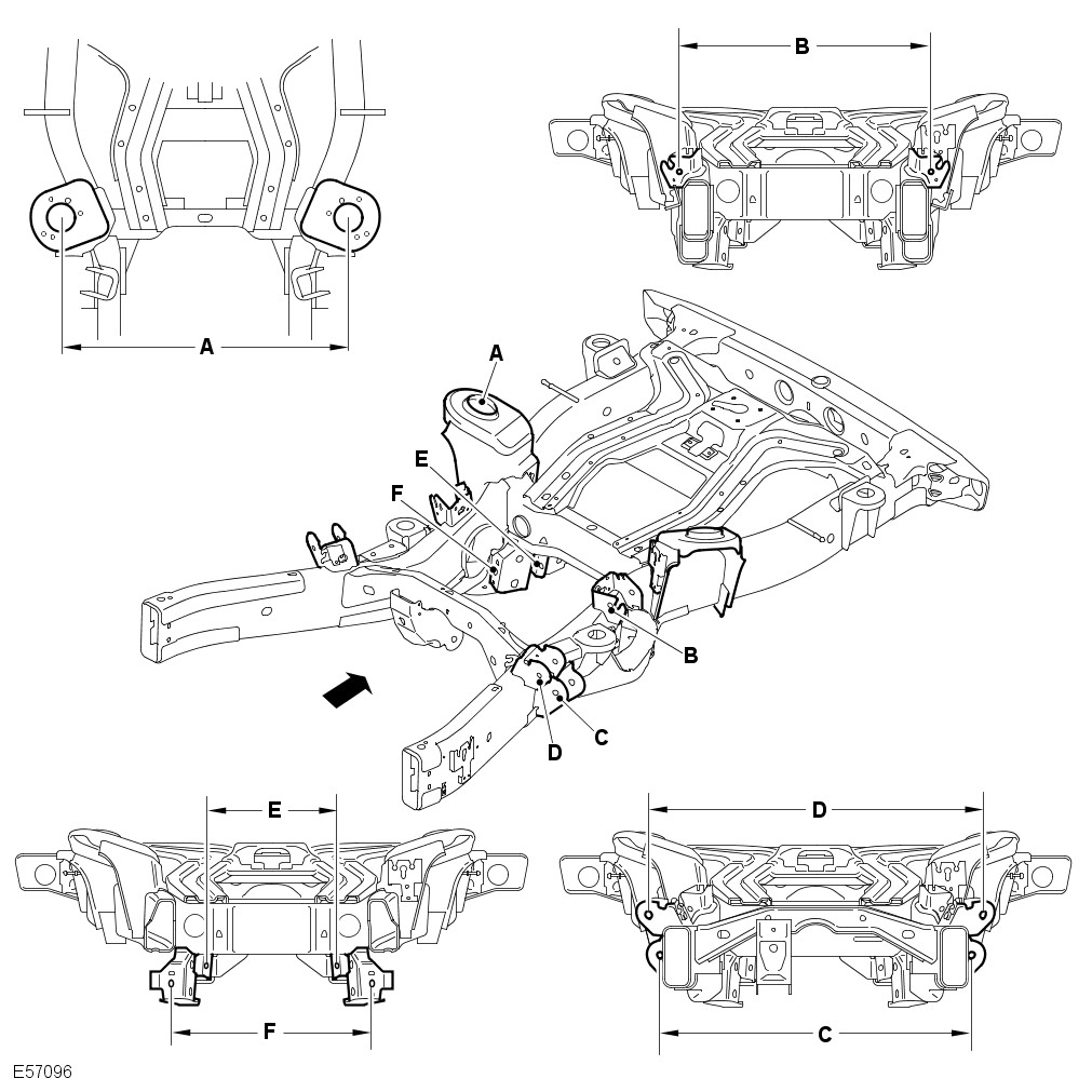 | F | Lower Arm Rear Mount (LH front) | Lower Arm Rear Mount (RH front) | 564.8 (22.24) |
