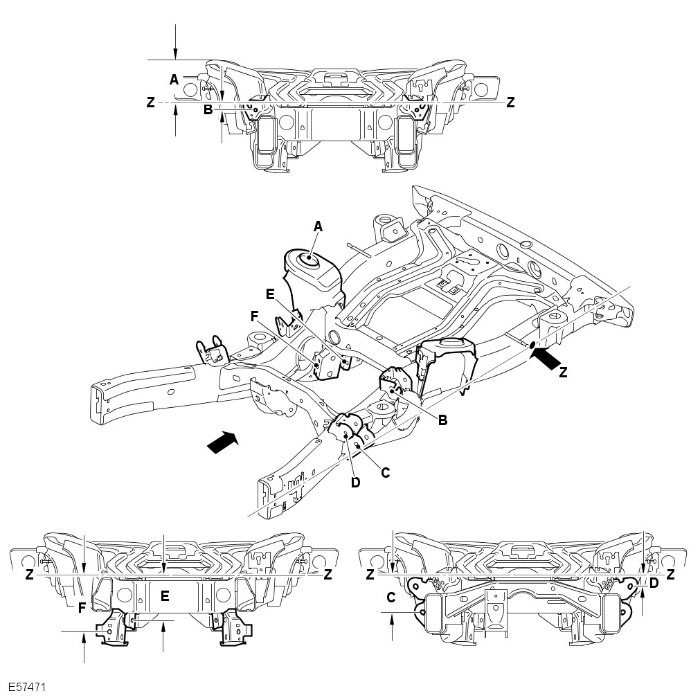 | C | Lower Arm Front Mount (LH front) | Lower Arm Front Mount (RH front) | 635.7 (25.02) |