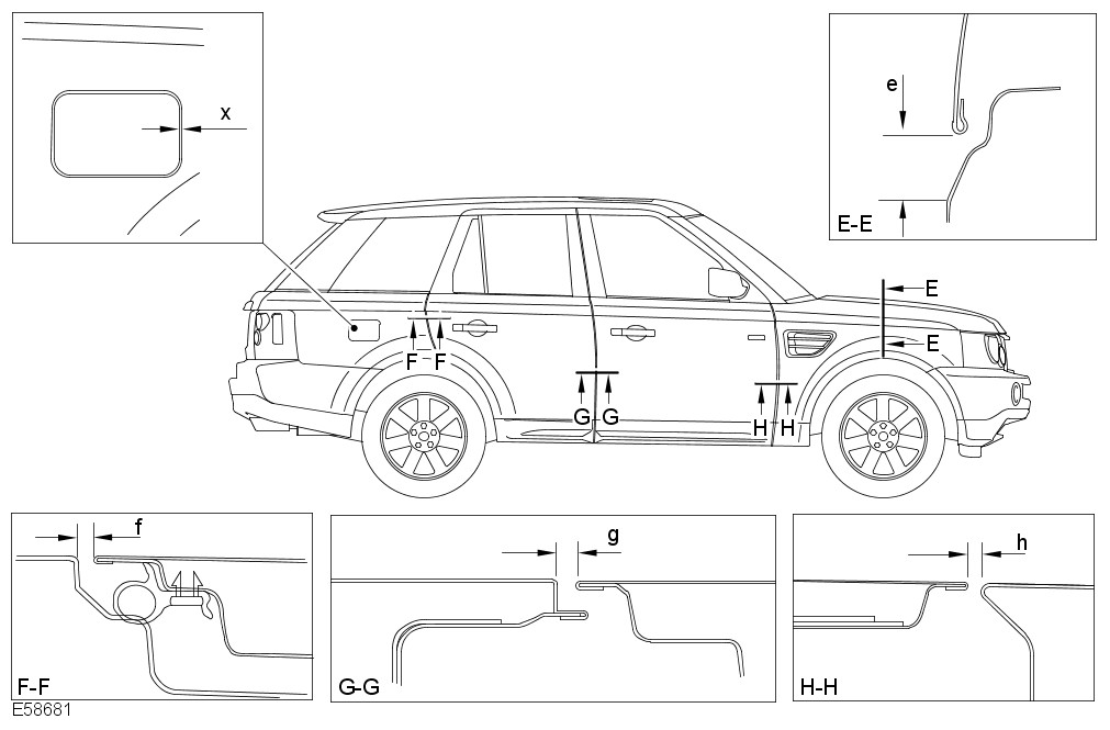| X-X | Fuel Filler Flap to Bodyside | 2.9 (0.114) ± 1.0 (0.039) | 1.0 (0.039) ± 1.0 (0.039) |
