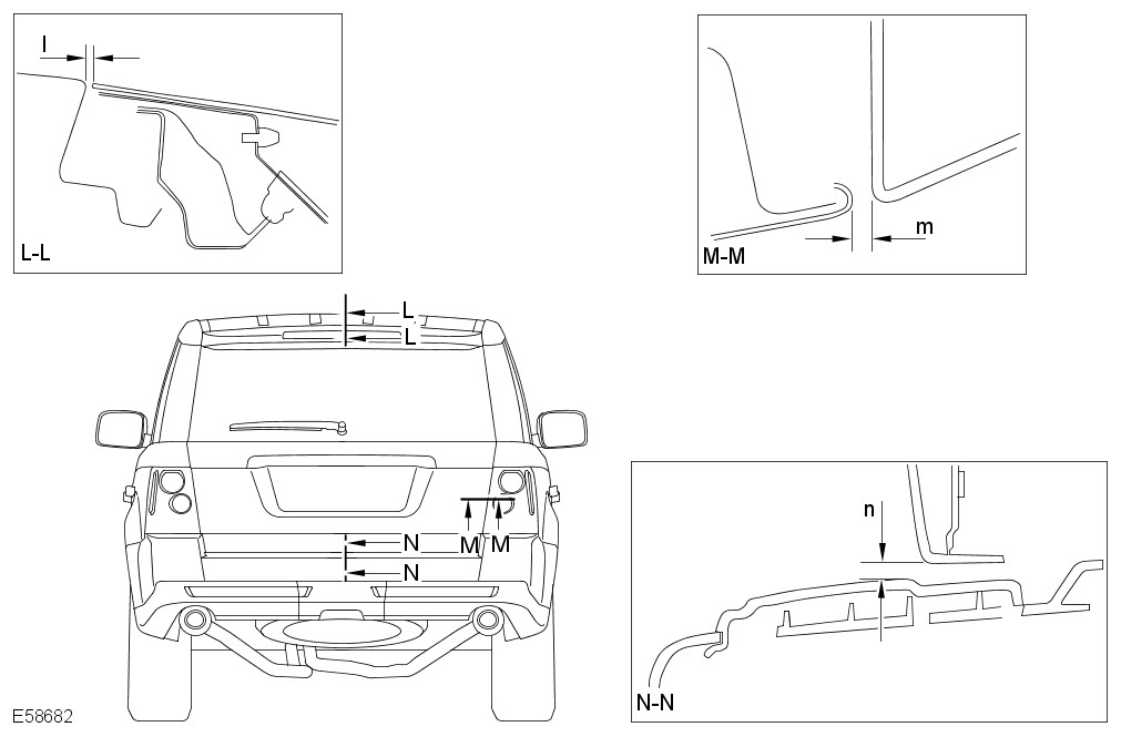 | M-M | Liftgate to Rear Lamp | 5.0 (0.196) ± 1.4 (0.055) | 1.5 (0.059) ± 1.2 (0.047) |