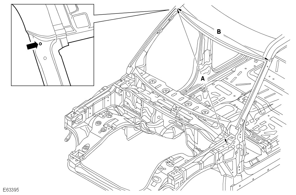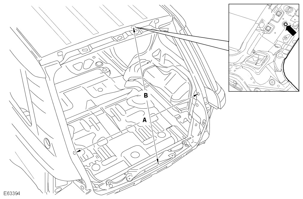 | A | LH upper trim panel, fixing hole | RH upper trim panel, fixing hole | 1217.0 (47.91) |