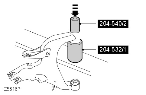 Using the special tools, remove and discard the lower arm rear bushings.