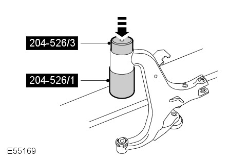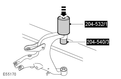Using the special tools, remove and discard the lower arm front bushings.