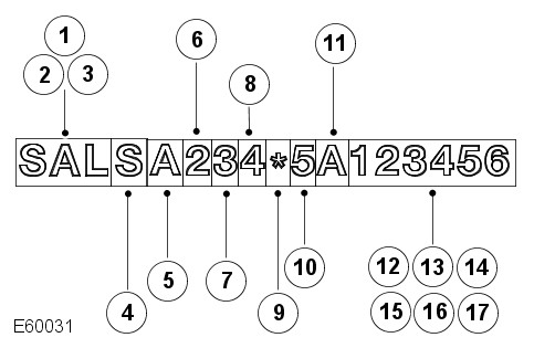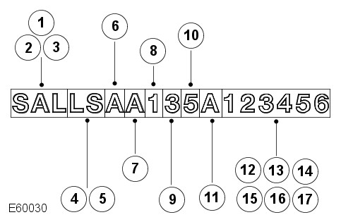 | 1 - 3 - World identifier | SAL | Land Rover (UK) |