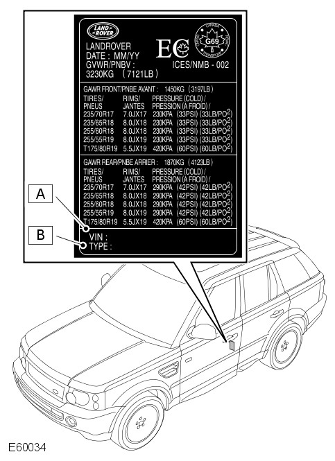 The VIN plate contains the following information: