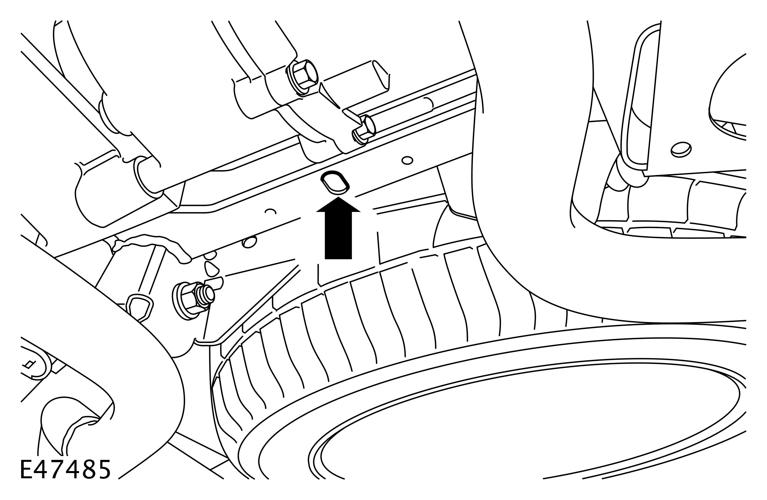 If the engine undershield has been removed, position the jack lifting pad in the centre of the front cross beam.