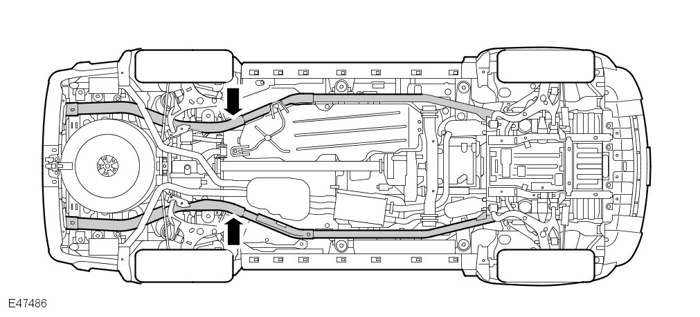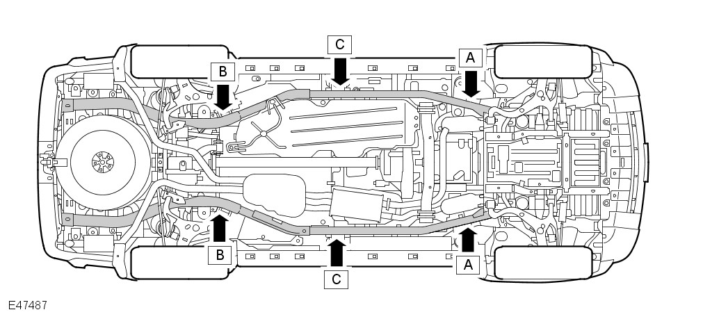 Before commencing work on the underside of the vehicle, ensure that axle stands are correctly positioned and vehicle is securely supported.