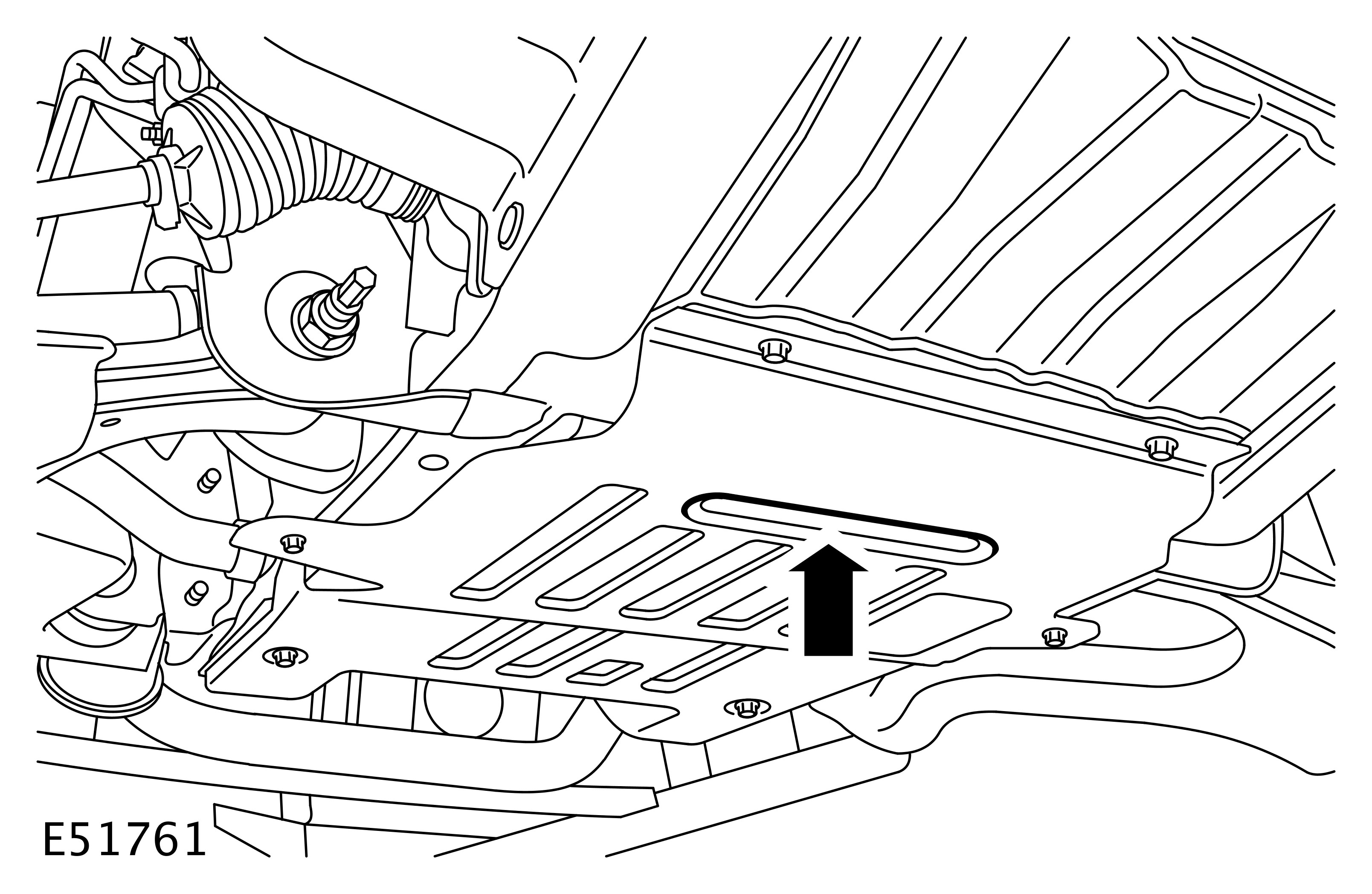 Position the lifting pad of the hydraulic jack in the centre of the recess in the engine undershield.