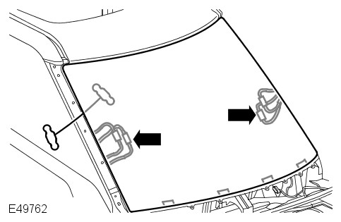 - Remove both A-pillar upper trim panels. For additional information, refer to: A-Pillar Trim Panel (501-05 Interior Trim and Ornamentation, Removal and Installation).