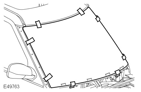 Apply a continuous bead of sealant to the windshield glass as shown.