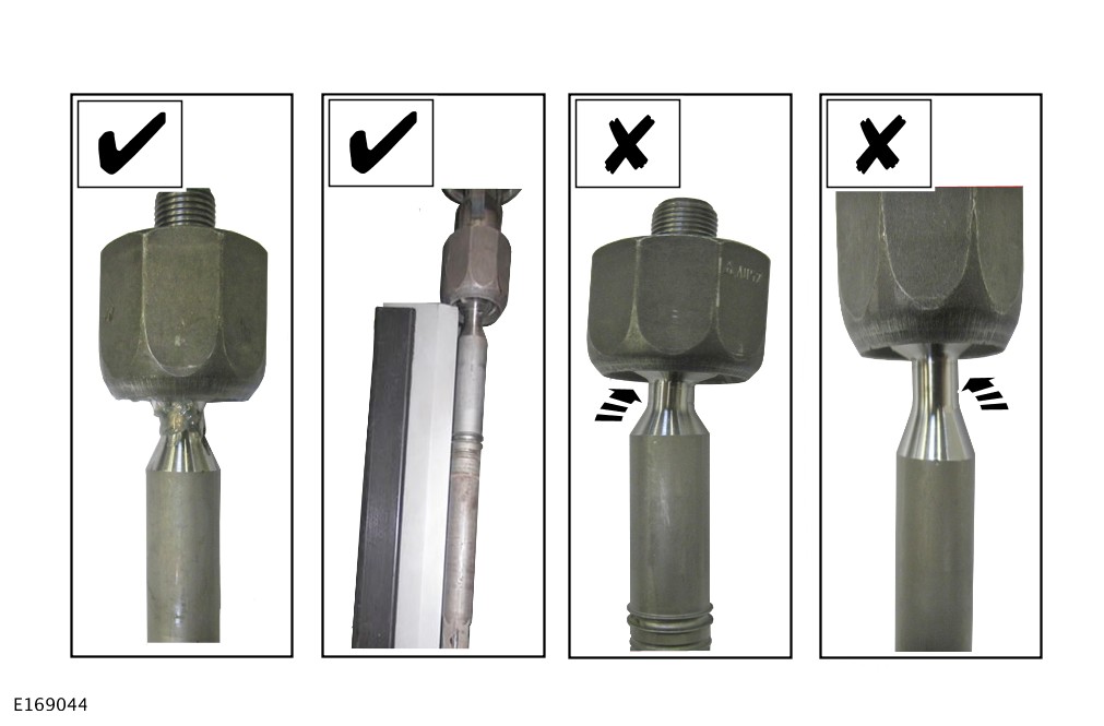The tie-rod shafts should show no signs of bending or deflection anywhere along the length of the entire shaft (as in the two left-hand pictures above).
