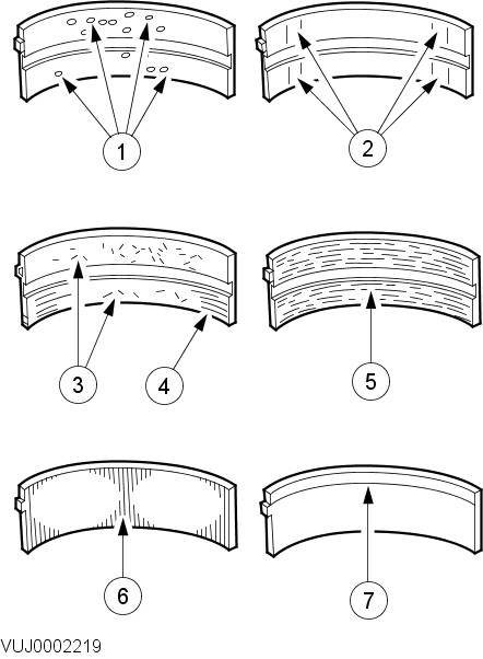 Inspect bearings for the following defects.