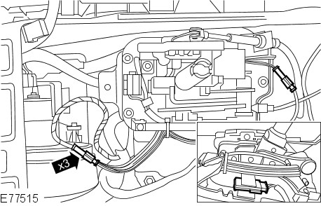 - Remove the selector lever housing clip from the selector cable.