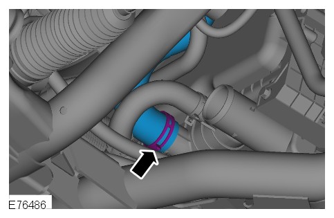Disconnect the coolant feed hose from the transmission fluid cooler.