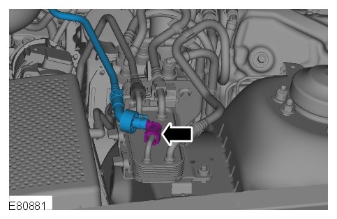 Disconnect the oil cooler multi valve hose from the radiator.