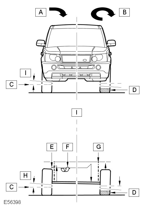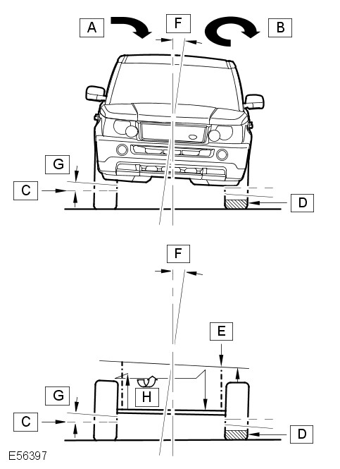 The following illustrations demonstrate the difference in body angle between a conventional 'passive' (non-Dynamic Response) stabilizer bar vehicle and a vehicle fitted with the Dynamic Response system.