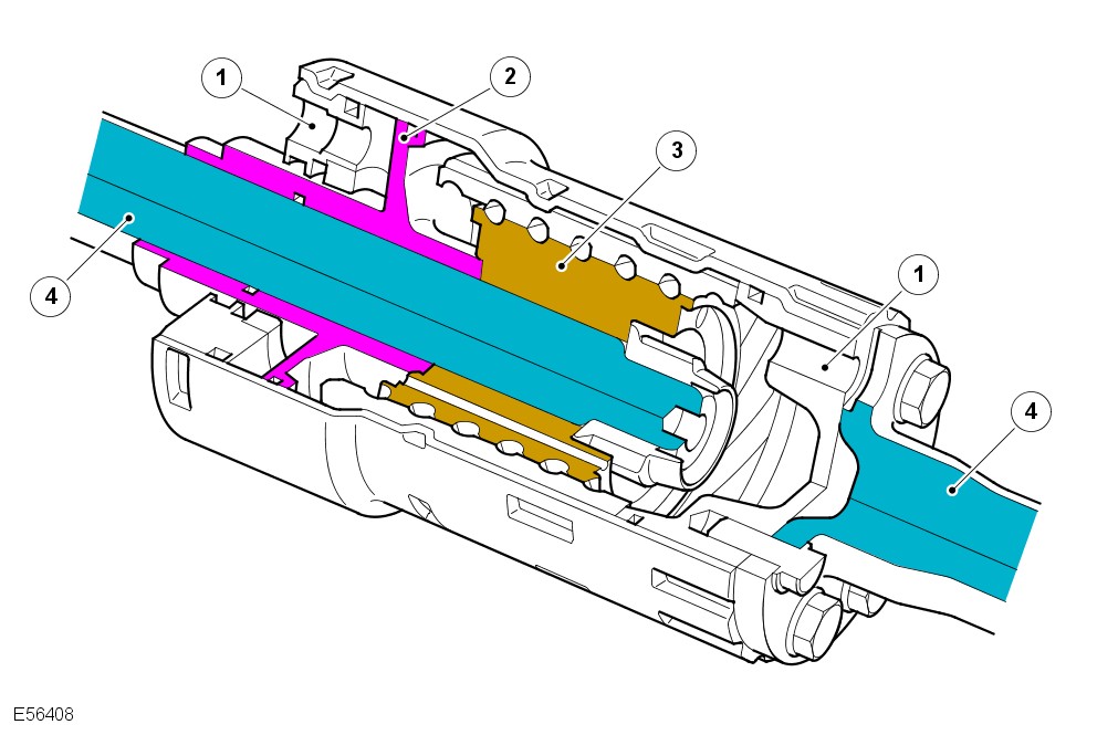 The front stabilizer links are not handed on the front stabilizer bar and are also common to vehicles not fitted with Dynamic Response. The rear stabilizer links are unique to vehicles with Dynamic Response. The Dynamic Response rear links are identified by a gray color plastic bearing moulding. The passive (non-Dynamic Response) links can be identified by a white colored plastic bearing moulding.