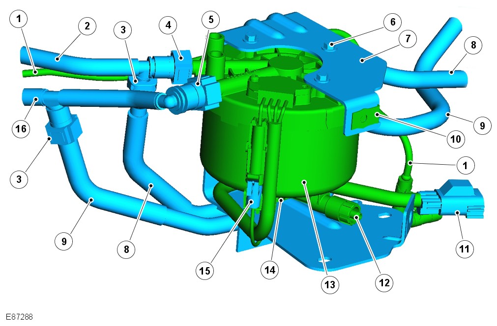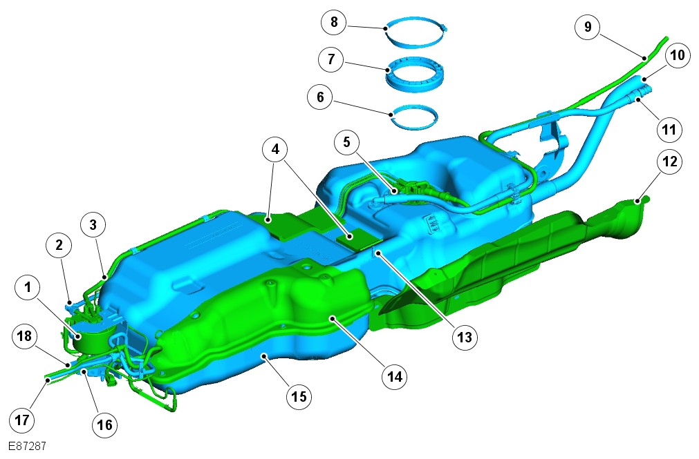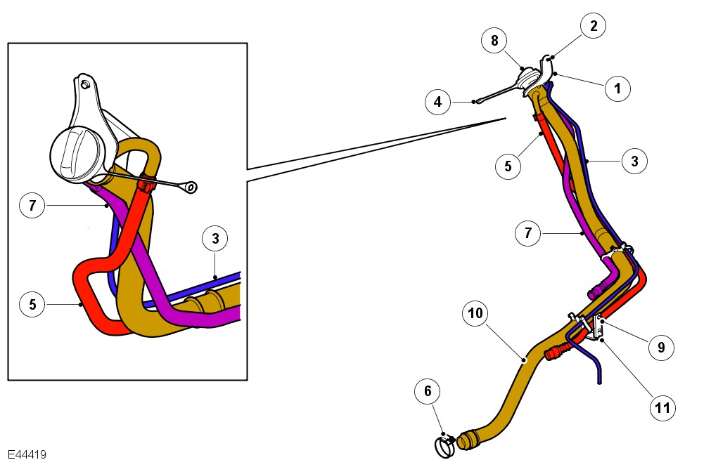 | 7 | Tank breather connector to underside of fuel pump module flange |