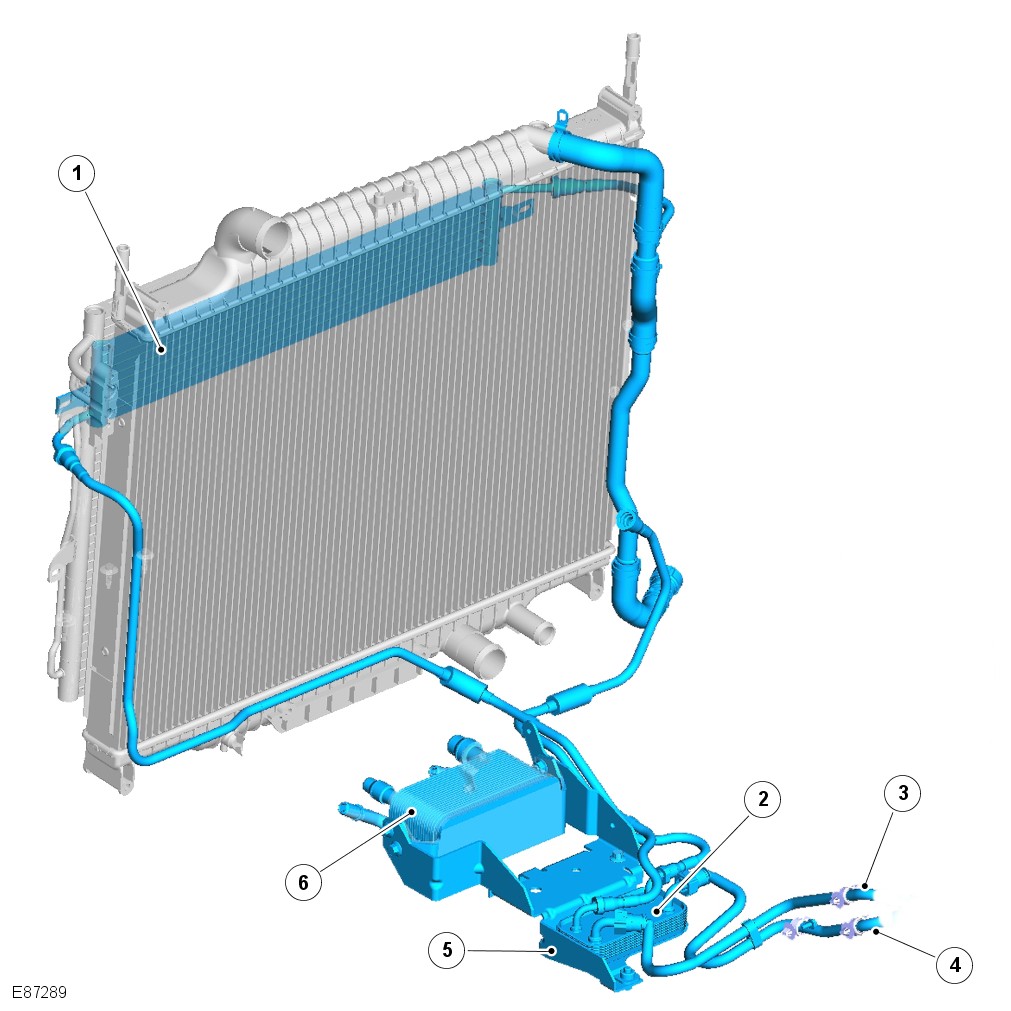 The fuel cooler uses engine coolant, direct from a dedicated additional engine coolant radiator located in front of the main radiator. This passes the cold coolant through the fuel cooler to cool fuel returning to the fuel filter from the HP injection pump.