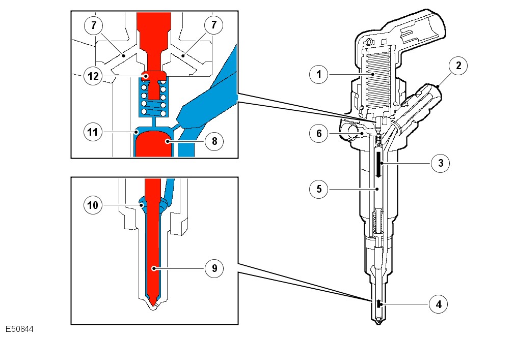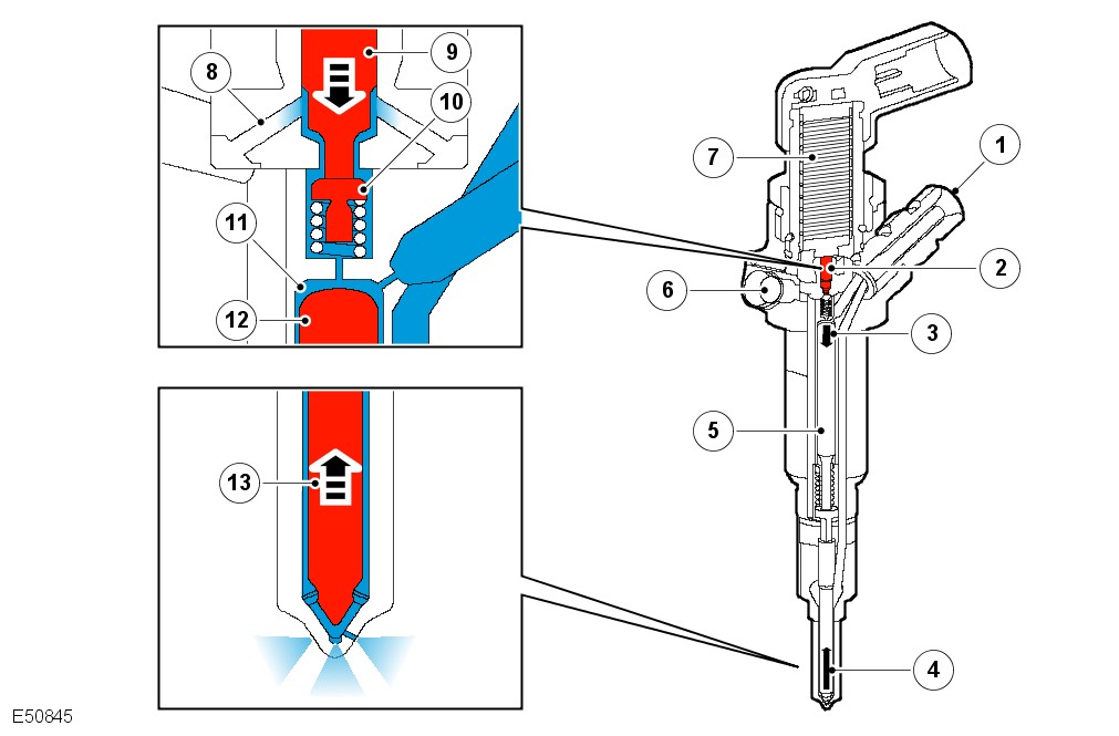 Each injection event is controlled by a charge and discharge cycle allowing energy to dissipate in, and recover from, the injector. Never disconnect the wiring connector when the vehicle is running. The injector may remain open thus causing engine damage.