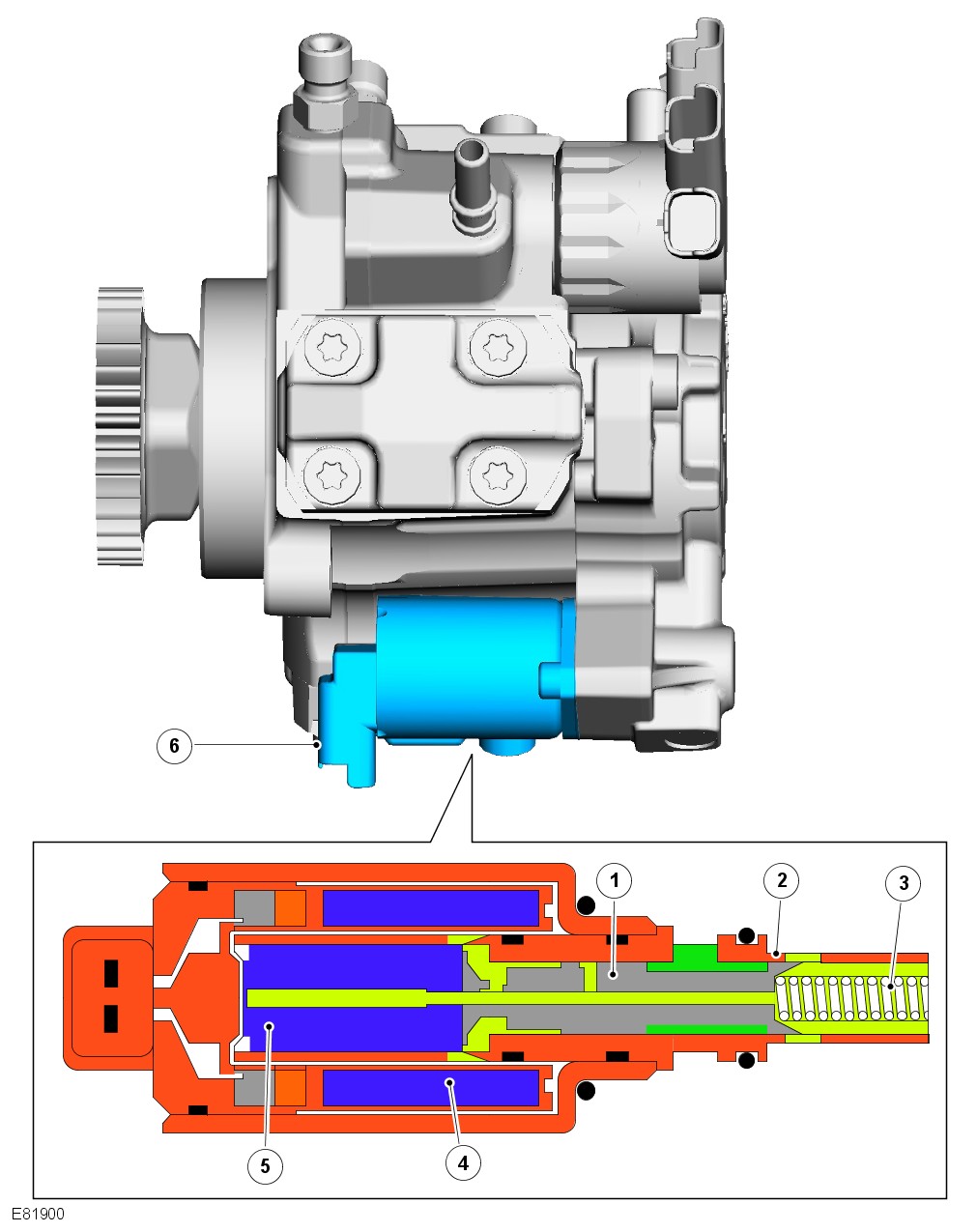 The high-pressure fuel pump consists of the following components:
