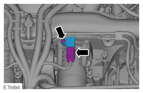 - Remove the engine cover. For additional information, refer to: Engine Cover - TDV8 3.6L Diesel (501-05 Interior Trim and Ornamentation, Removal and Installation).