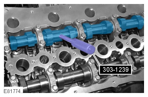 Install the special tools to both the LH bank and RH bank camshafts.