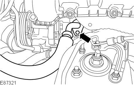Disconnect the air conditioning (A/C) compressor low-pressure refrigerant line.