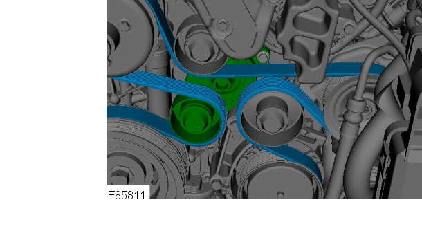- Remove the accessory drive belt. For additional information, refer to: Accessory Drive Belt (303-05D Accessory Drive - TDV8 3.6L Diesel, Removal and Installation).