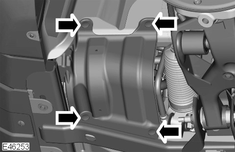- Remove the hood latch panel. For additional information, refer to: Hood Latch Panel (501-27 Front End Sheet Metal Repairs, Removal and Installation).